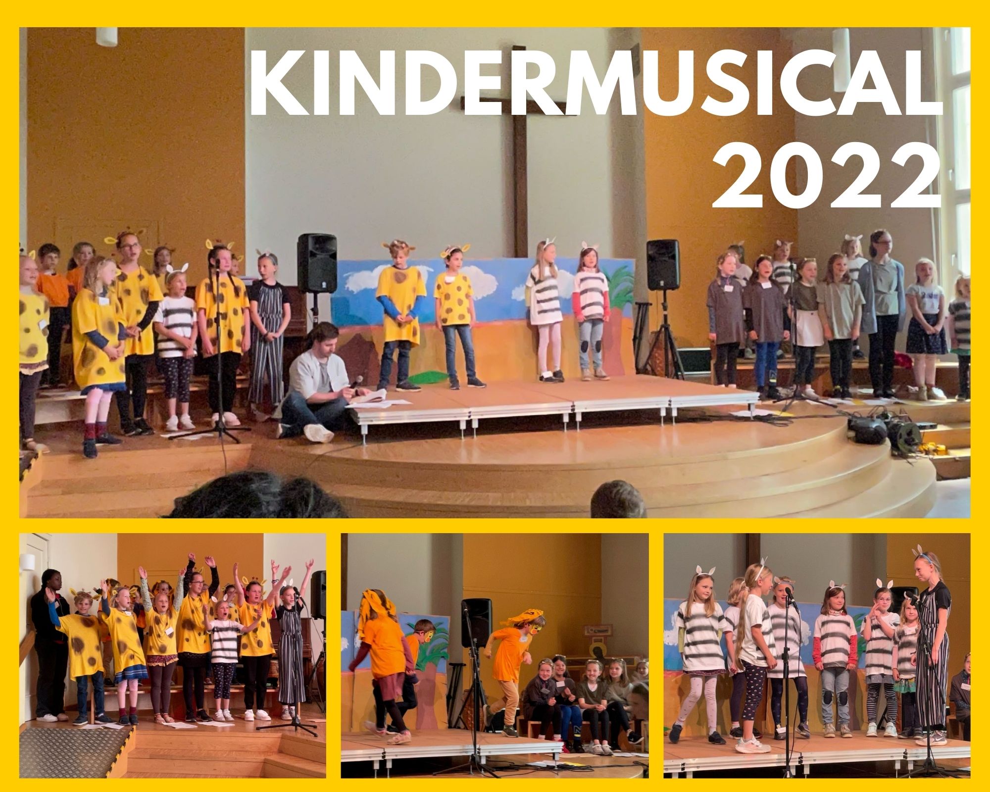 Du möchtest mit vielen anderen Kindern auf der Bühne stehen und zeigen, was Du drauf hast? Du hast Spaß am Singen im Chor oder vielleicht sogar als Solistin oder Solist, Theaterspielen oder Tanzen? Dann mach mit bei unserem Kindermusical, dass dieses Jahr in der afrikanischen Savanne spielt – vier Tage lang proben, singen und spielen wir bis zum großen Auftritt!