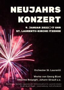 Am Sonntag, 9. Januar, 17 Uhr, lädt das Orchester St. Laurentii mit seinen knapp 20 Musikern ein zu einem kleinen Neujahrskonzert in die St. Laurentii-Kirche. Auf dem Programm stehen u.a. Auszüge aus der Carmen-Suite von Georges Bizet, die 3. Orchestersuite von Ottorino Respighi, beschwingte Tangos und mehr. Die Leitung hat Kantorin Dörthe Landmesser.
