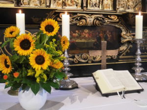Nach dem Gottesdienst laden wir ein zu einer Geburtstagsfeier in der Kirchenstraße. Tische und Bänke laden zum Zusammenkommen ein, Wasser, Kaffee und Tee und einige Kleinigkeiten stehen bereit – und wir bitten alle, die Lust haben, mitzufeiern, etwas zum Essen mitzubringen – einen Kuchen, einen Salat, etwas Obst, Brot, Butter, Käse, was Sie gerne mögen und mit anderen teilen möchten.